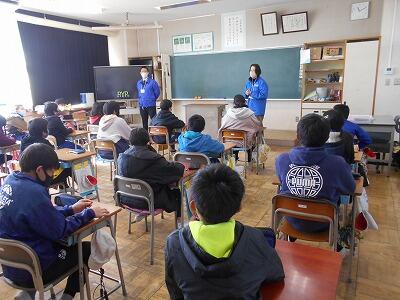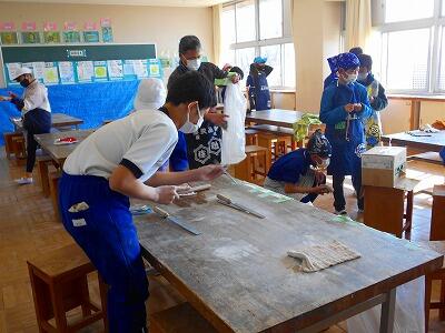 8日は2年1組と1年2組、9日は2年2組と1年1組というようにクラスごとに交流しました。