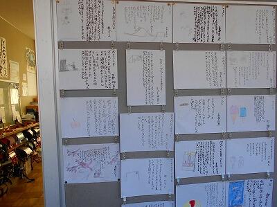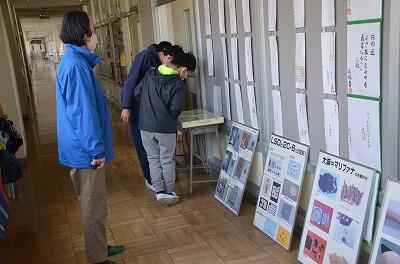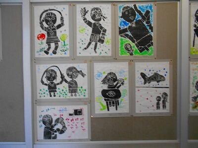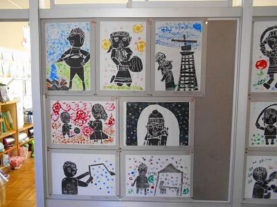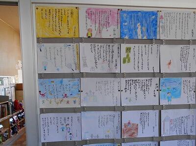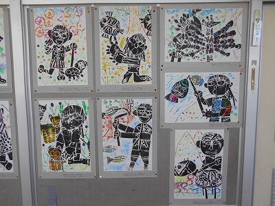 各教室の廊下に国語や書写・図工や生活科の作品が飾られています。