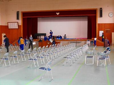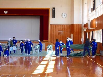 3月12日金曜日、5年生が卒業式の式場を設営しました。