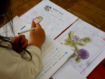 子どもたちは、なわとびカードを利用して自分のとべる技を増やそうとがんばっていました。