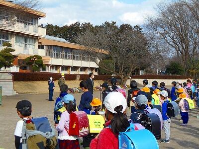 3月12日金曜日、1年生から6年生までで下校する集団下校はこの日が最後になります。
