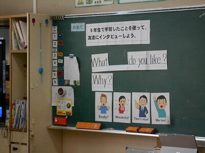 本時のめあては「5年生で学習したことを使って、友達にインタビューしよう。」です。