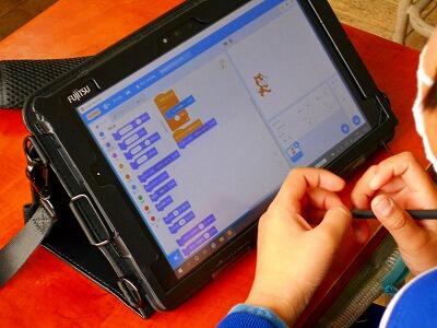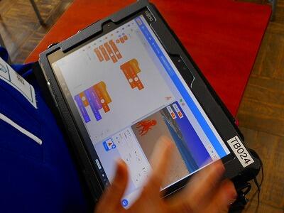 Scratchを使って絵や動きが変わるプログラムを作成していました。