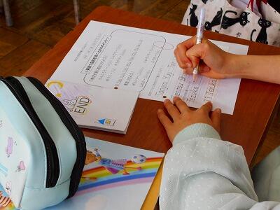 この日は、5年生になる準備として、自分の名前をアルファベットで書く練習をしていました。
