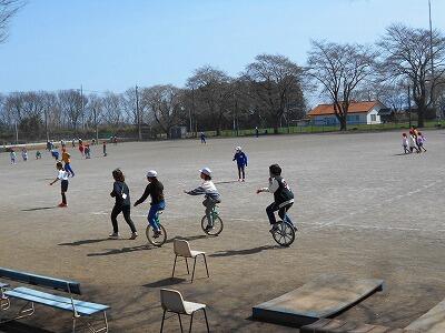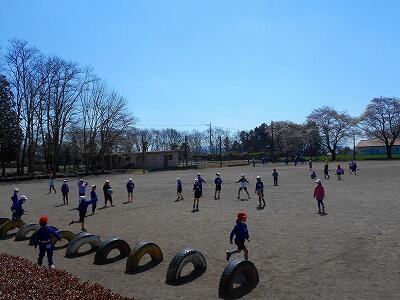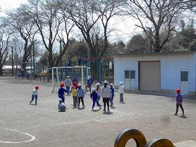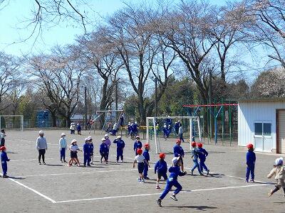 春らしい暖かな陽気の中、子どもたちは元気いっぱい校庭で遊んでいました。
