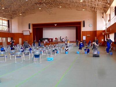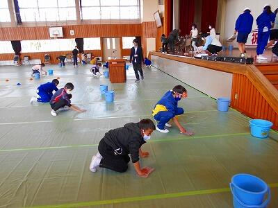 在校生は明日の卒業式に参加できませんが、お世話になった6年生に感謝の気持ちを込めて、きれいな会場で卒業式が迎えられるよう一生懸命、準備や清掃を行っていました。