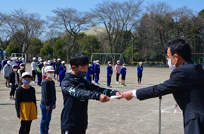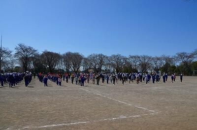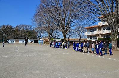 3月18日木曜日、業間に校庭で6年生とのお別れの式を行いました。