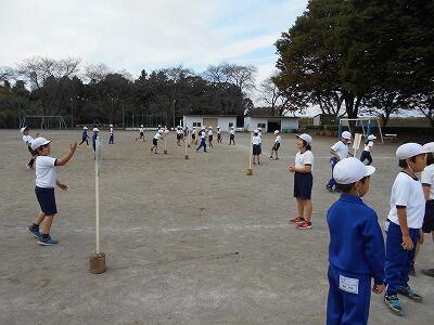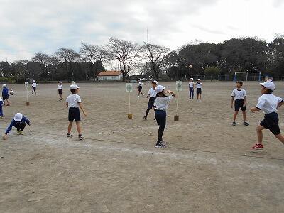 キャッチボールをしたり、的当てをしたりするなど、楽しんで取り組んでいました。