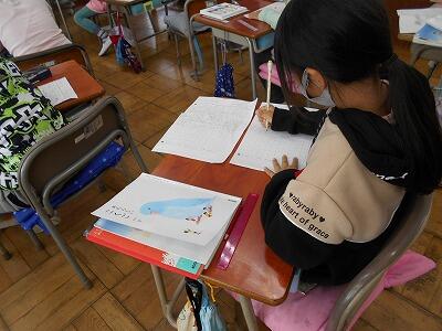 国語の物語文「かいがら」の読み取りの学習をしていました。
