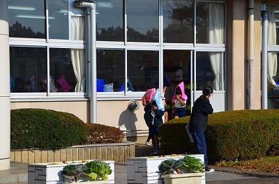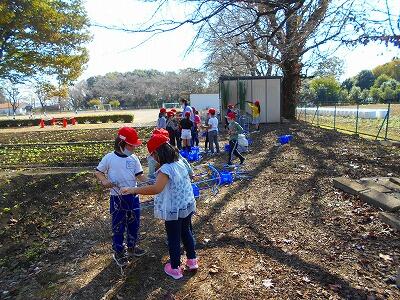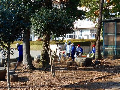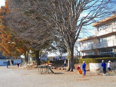 外清掃になった子どもたちは、たくさんの落ち葉を一生懸命集めていました。