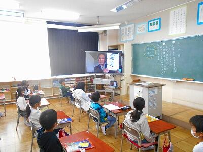 式は校長室で行い、その様子を各クラスにZOOMで放映しました。