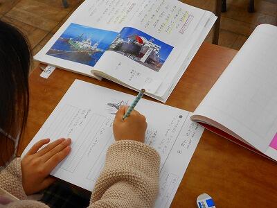 映像を見たり、教科書を読んだりして「漁船」のつくりやできることを見つけ、理解を深めていました。