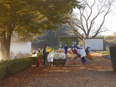 そこで本日から外清掃班の人数を増やして、落ち葉はきを重点的に行っています。12月上旬まで行う予定です。