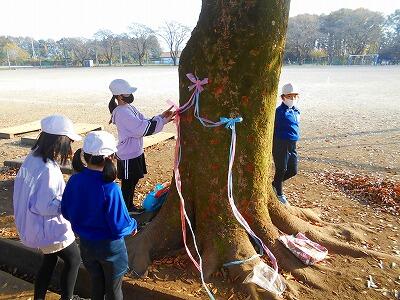学校林でどんぐりやとちのみ、イチョウの葉など、秋のものをたくさん発見し、観察していました。