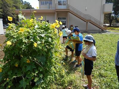 1組は理科の学習で、ヘチマの観察をしていました。