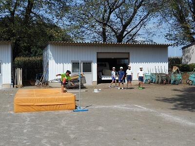体育で「ジャベリックボール投げ」と「走り高跳び」の学習をしていました。