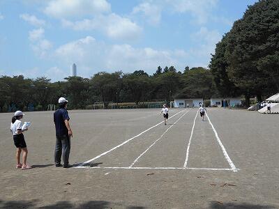 体育の学習で「100m走」を測っていました。