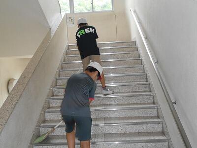 教室や階段、体育館、家庭科室など、汚れがひどかったところを掃除しました。