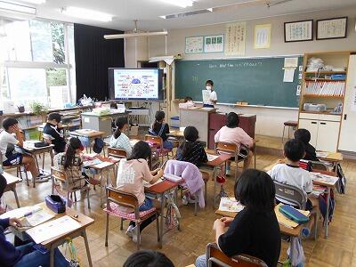 1組は外国語Unit4「What time is it? 今、何時?」の学習をしていました。