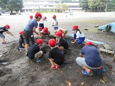 2組は生活科の学習で「砂遊び」をしていました。