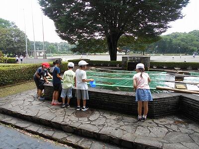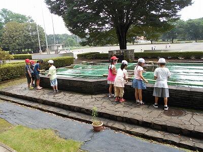 職員室前の池に子どもたちが集まっていました。