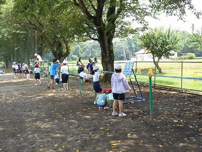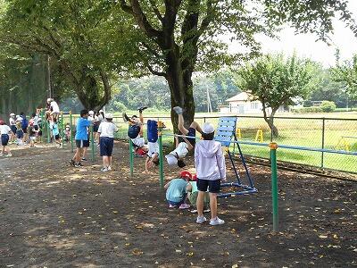 鉄棒にもたくさんの子どもたちが集まって遊んでいました。