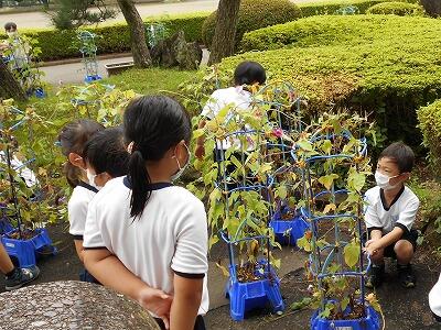 生活科の学習で、アサガオの観察をしていました。