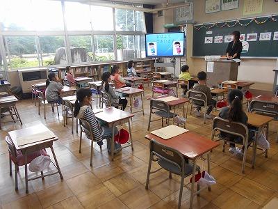 分散登校初日に、学級活動の一環として、これからの学校生活のために感染症予防の