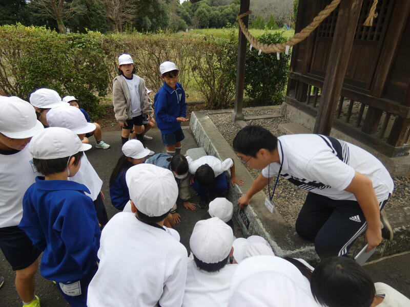 6時間目の「総合的な学習」の時間に、学校のすぐ近くの公民館に隣接する「亀山神社」に見学に行きました。
