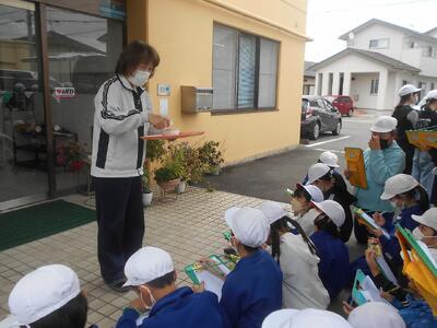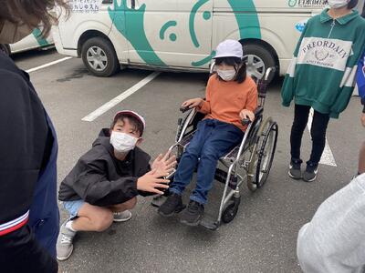 4年生は、総合的な学習の時間で「福祉」をテーマに学習しています。この日は、亀山地区にある特別養護老人ホーム「椿寿園」へ訪問に行きました。