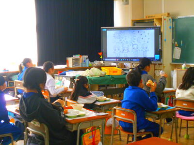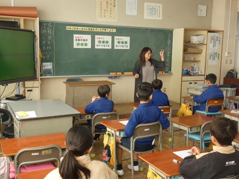 自分達が普段何気なく食べている給食には、健康と成長を考えた様々な工夫が凝らされていることを知り、子どもたちは驚きの表情でした。