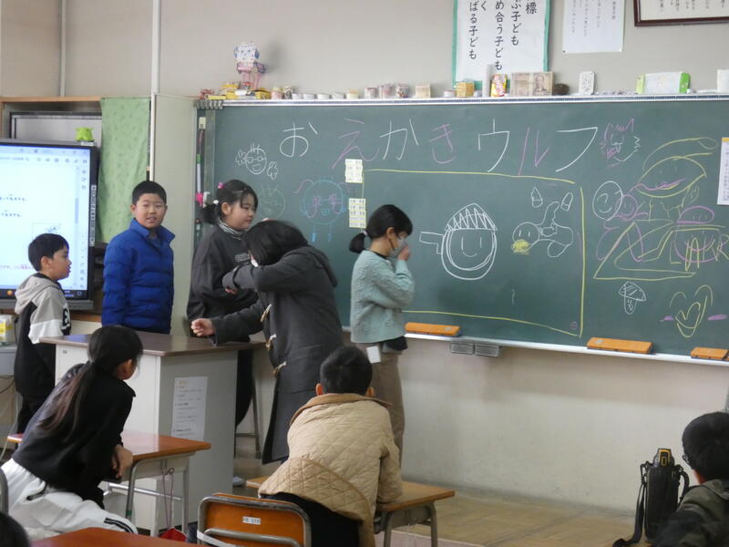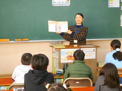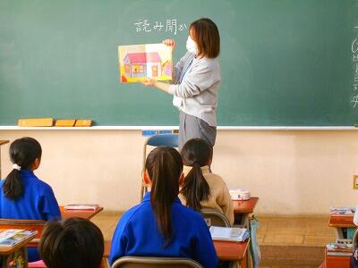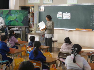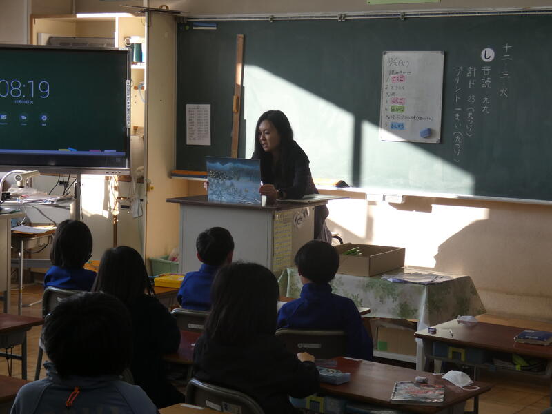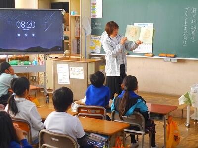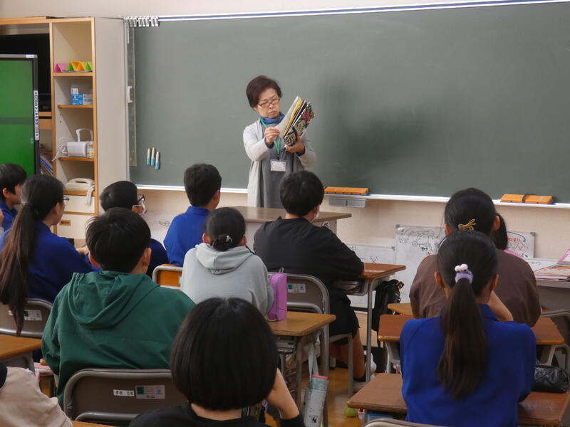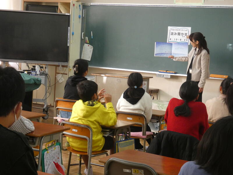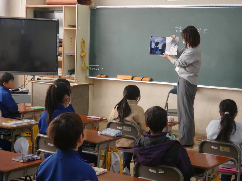 1・2年生の教室へ行き、絵本や紙芝居を読みました。