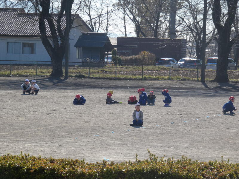 子どもたちは寒さに負けずに、元気に外で遊んでいます。
