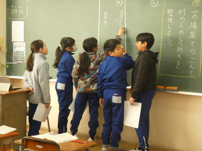 子どもたちは、根拠となる叙述をもとに、自分の考えを伝え合いながら、どんどん深めていました。