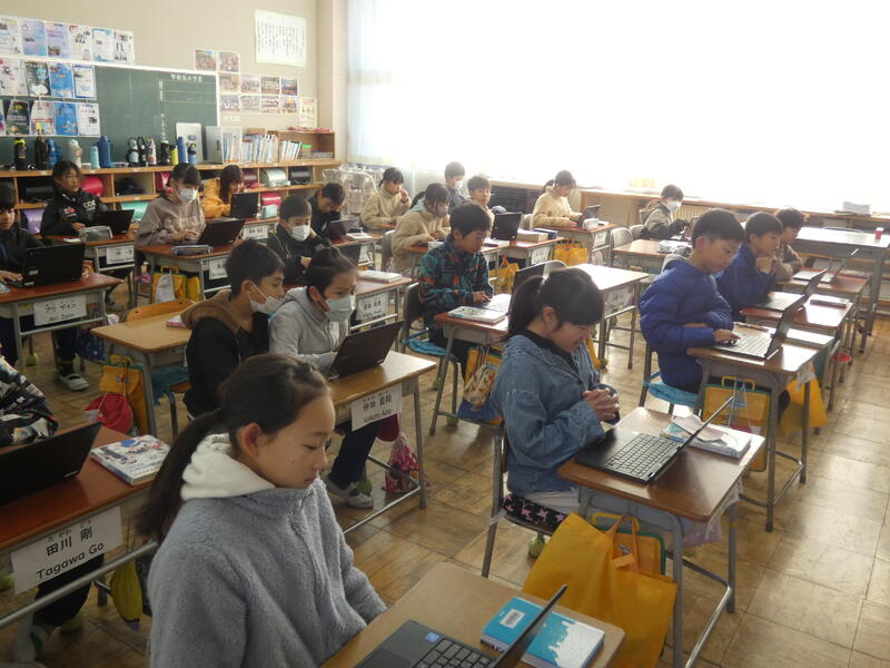 休み時間になると、子どもたちが集まって熱心に読む姿が見られました。