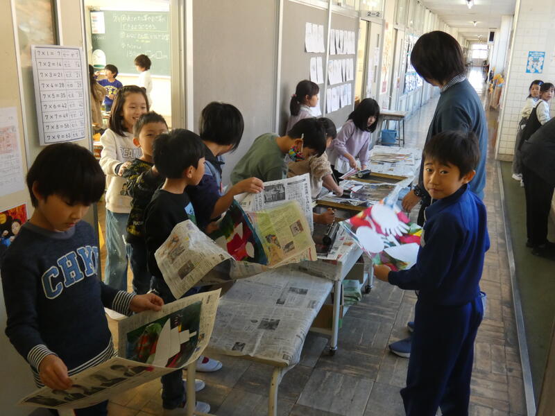 担任が一人一人の子どもたちに声をかけながら渡しました。
