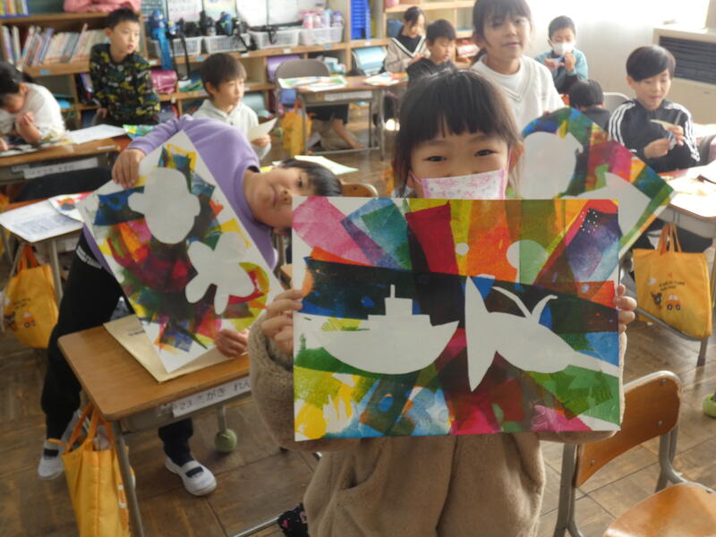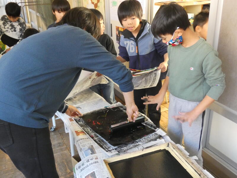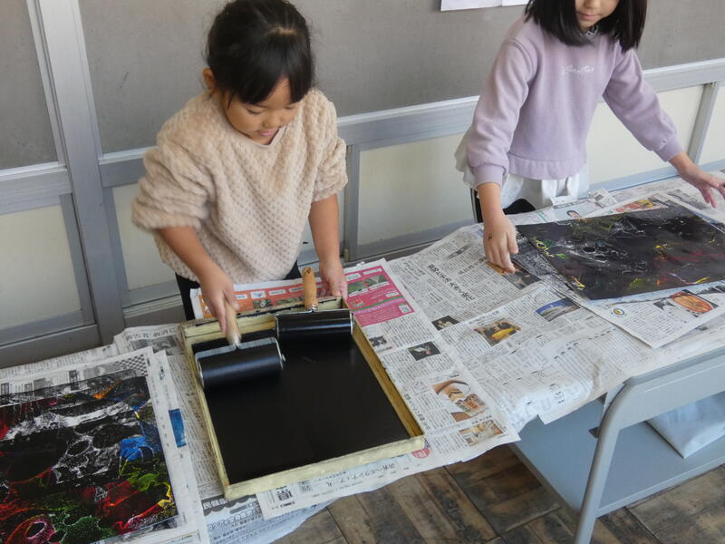 子どもたちは額に汗を浮かべながら、一生懸命刷る作業に取り組んでいました。