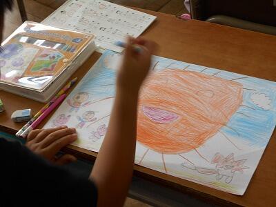 本時のめあては「おてんとうさまをえがこう。」でした。