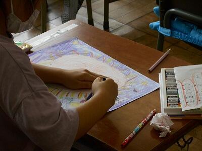 一人一人が、自分の思いえがく、「おてんとうさま」を大きく楽しみながら描いていました。