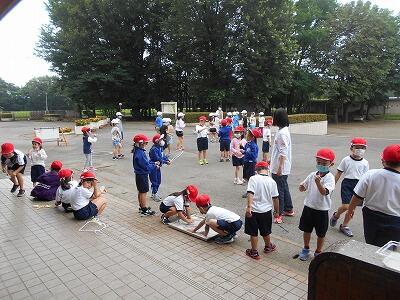 生活科でシャボン玉遊びをしていました。各自が用意してきた針金ハンガーなどシャボン玉が作れそうな材料で、シャボン玉遊びを楽しんでいました。