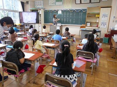 子どもたちは教師の範読に続けて、リズムを楽しみながら音読していました。