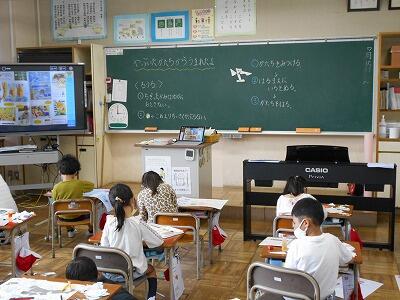 1組は国語でひらがなの「のばす音」の書き方や言い方について学習していました。