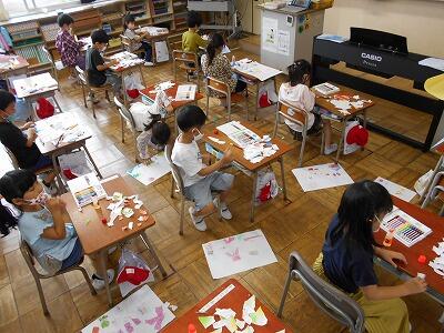 2組は図工で「やぶれたかたちからうまれたよ」の学習をしていました。