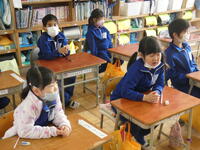 1年生は真剣な顔で動画を見ています。