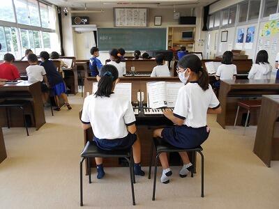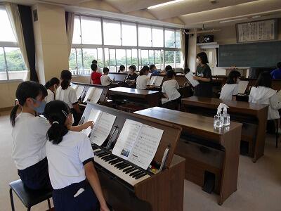 オルガンを使い「こきょうの人々」を演奏しながら、和音の響きのよさを感じていました。