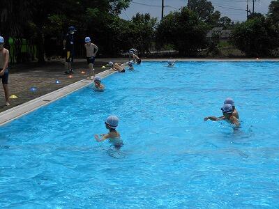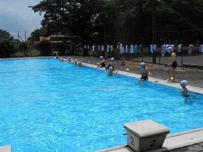 今年初めて水泳の学習をしていました。先生の指示を聞いて、ルールを守って行っていました。