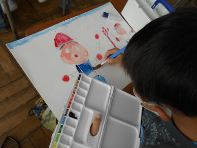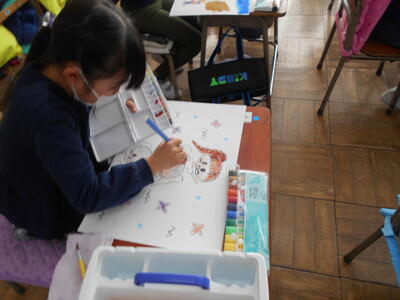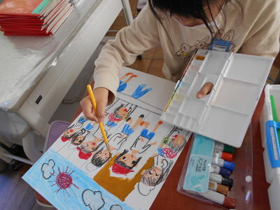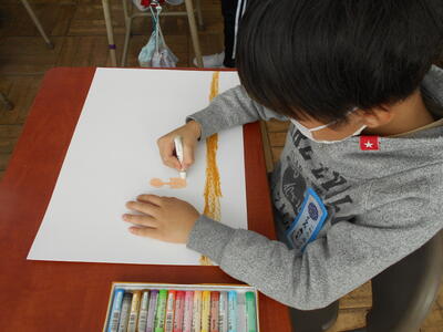 クレヨンと絵の具を上手に使いながら完成させていきます。