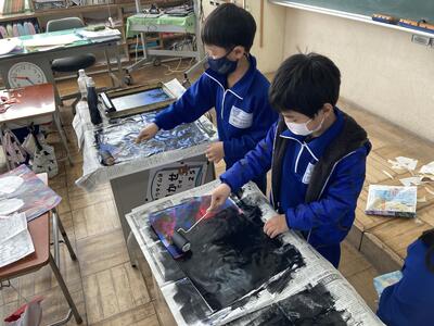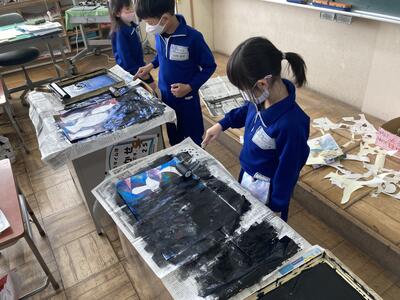 今日は、ローラーを使って黒インクを塗り、仕上げをしました。