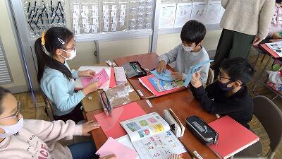 習った形を使って作成した「クリスマスカード」や「ありがとうカード」をグループごとに発表しました。