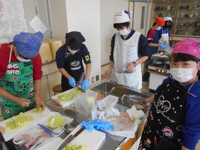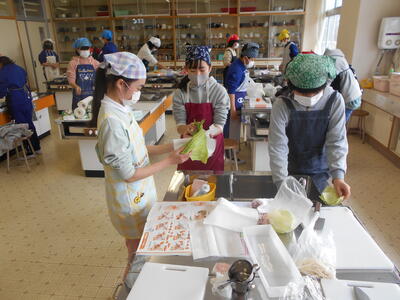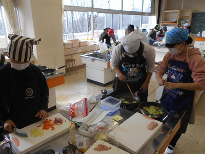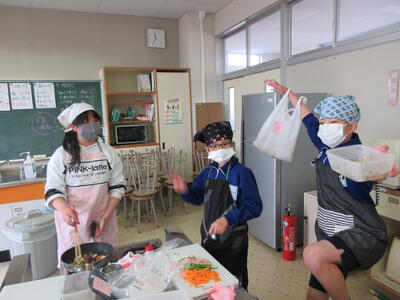各自で食材を選び調理の計画を立て、全員が美味しそうな炒め物をつくることができました。